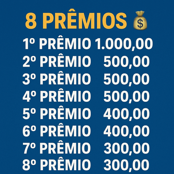 R$ 4.000,00💸 DIVIDIDO EM 8 PRÊMIOS